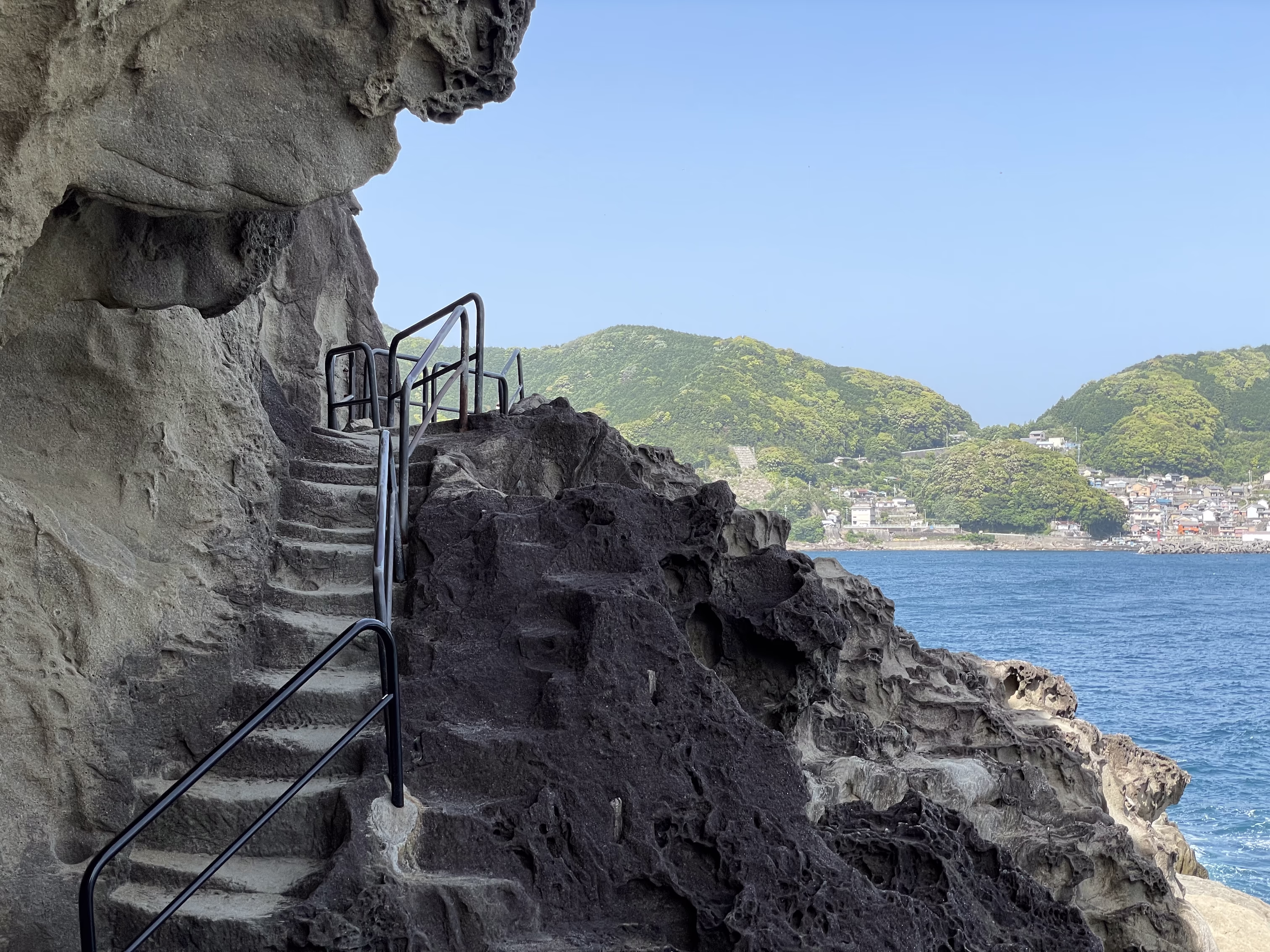 松阪駅から4時間かけて、本州2位の長距離路線バス(三重交通・松阪熊野線)でやってきました。世界遺産の鬼ヶ城です。