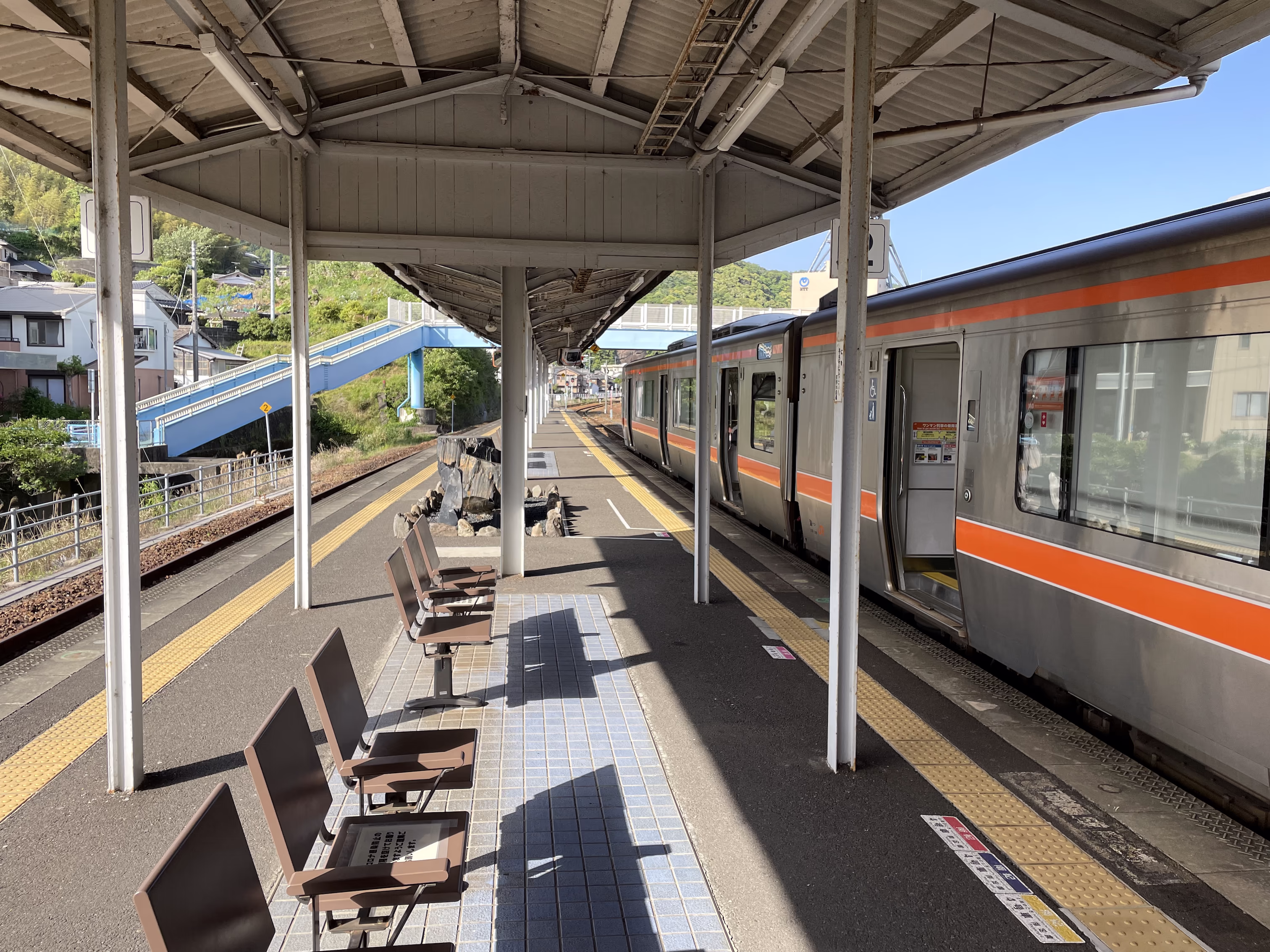 熊野市駅ホーム。帰りは鉄道にしました。