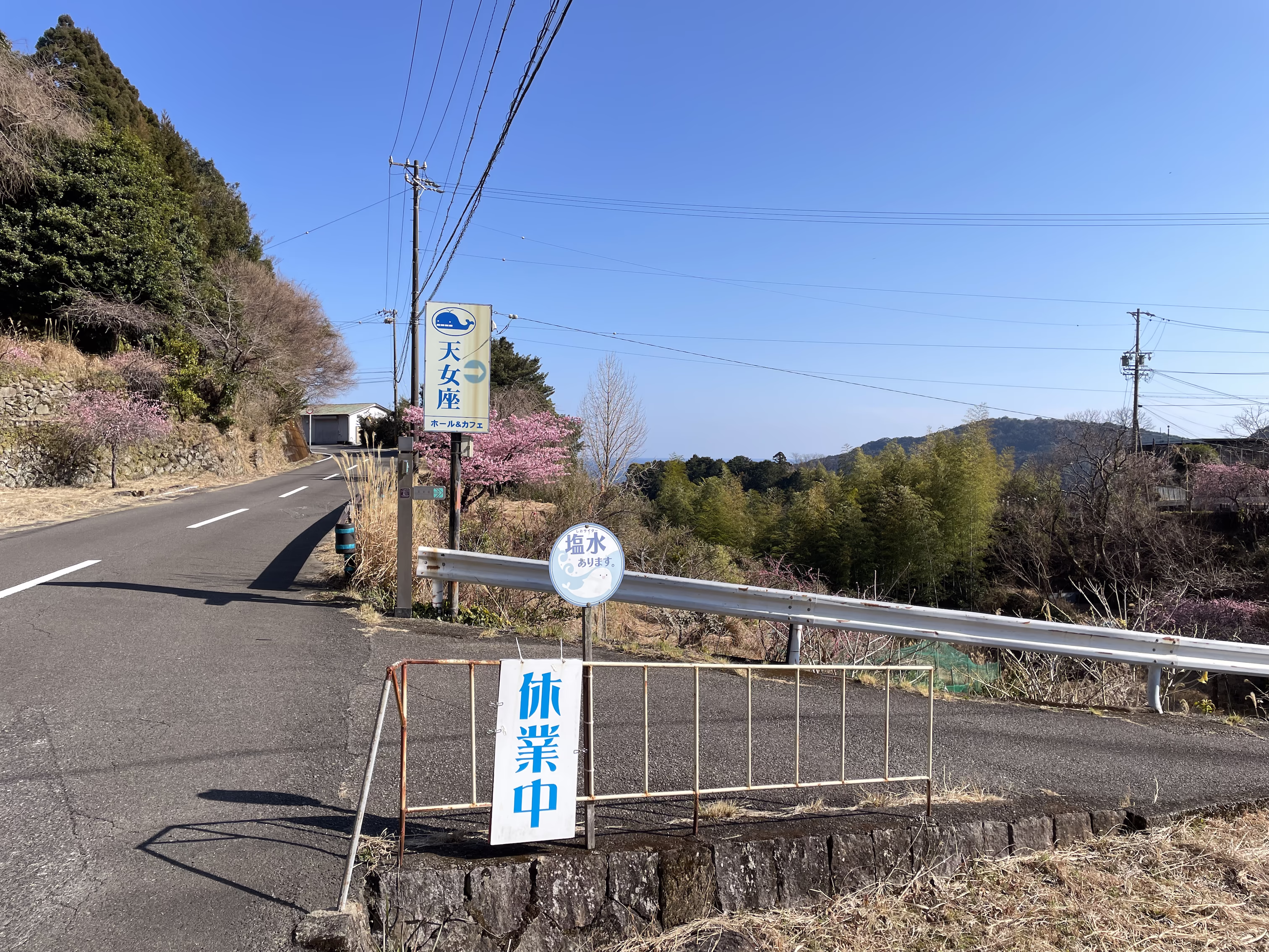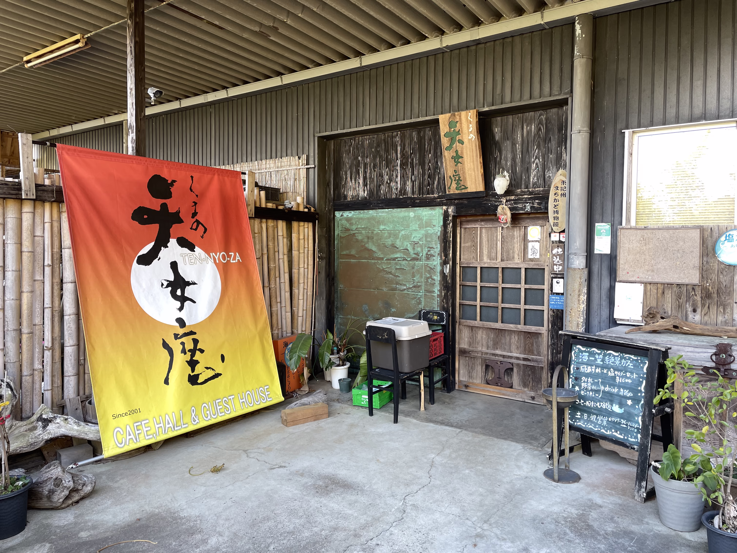 魚作商店さん前です。よく見ると天女座さんの案内看板が掛かっています。